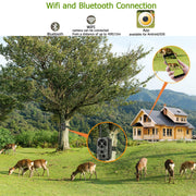 - Diese WIFI-Kamera hat ein eingebautes Wi-Fi- und Bluetooth-Modul, so dass Sie die Kamera über eine spezielle mobile App ("TrailCam Mobile") verbinden und bedienen können. Das Bluetooth-Modul, das mit geringer Leistung arbeitet, wird für die Geräteerkennung verwendet, und Wi-Fi wird für die Vorschau, Bildübertragung und Einstellungen verwendet.